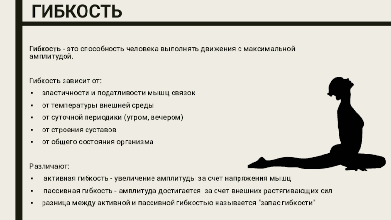 Гибкость - это способность человека выполнять движения с максимальной амплитудой.