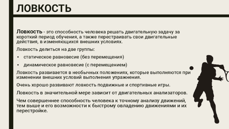 Ловкость - это способность человека решать двигательную задачу за короткий период