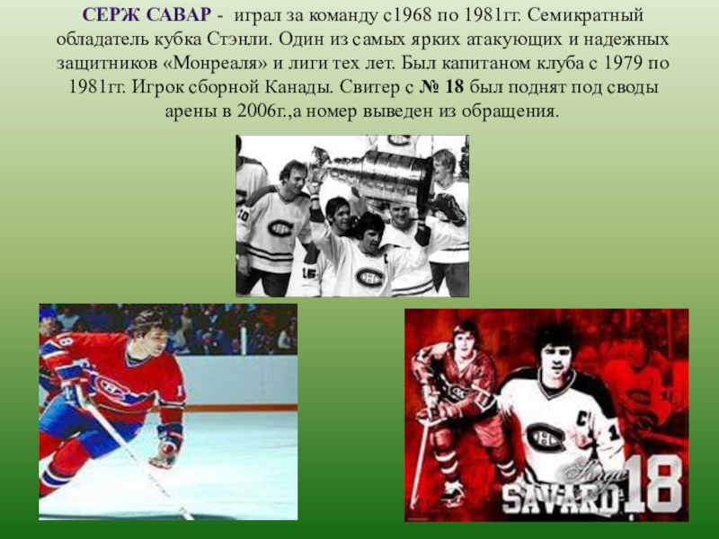 Слайд 8СЕРЖ САВАР - играл за команду с1968 по 1981гг. Семикратный обладатель