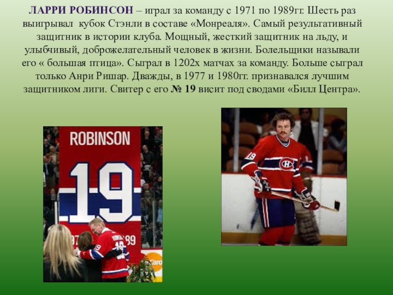 Слайд 9ЛАРРИ РОБИНСОН – играл за команду с 1971 по 1989гг. Шесть