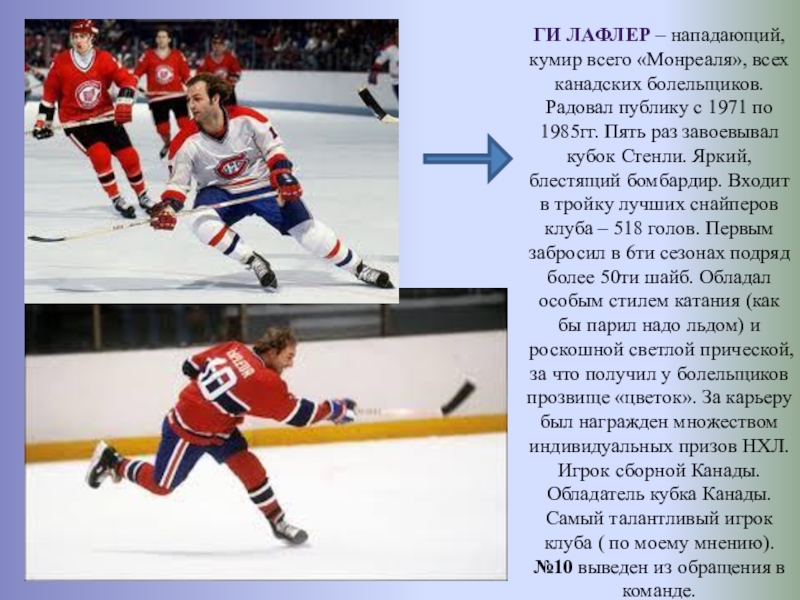Слайд 12ГИ ЛАФЛЕР – нападающий, кумир всего «Монреаля», всех канадских болельщиков. Радовал