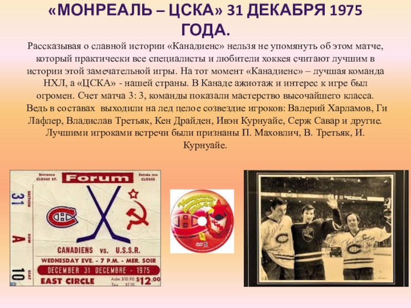 Слайд 13«МОНРЕАЛЬ – ЦСКА» 31 ДЕКАБРЯ 1975 ГОДА.