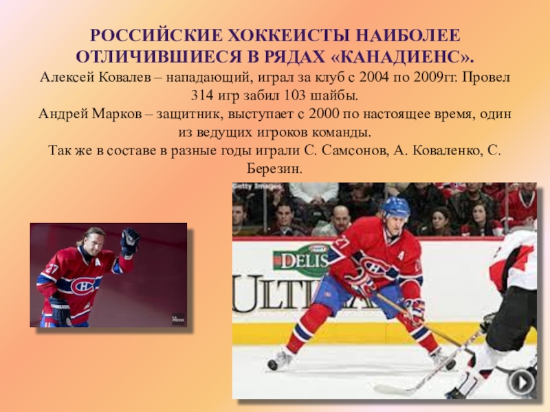 Слайд 14РОССИЙСКИЕ ХОККЕИСТЫ НАИБОЛЕЕ ОТЛИЧИВШИЕСЯ В РЯДАХ «КАНАДИЕНС».