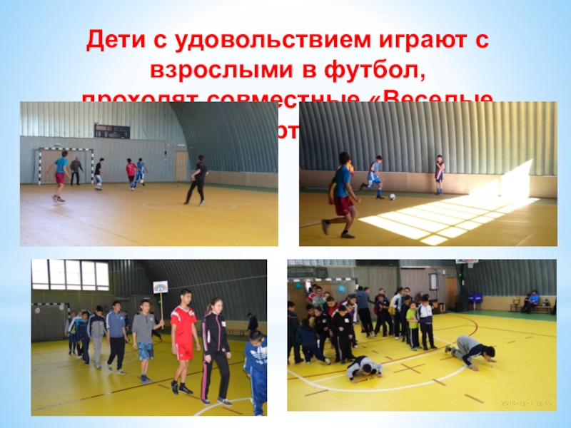 Слайд 11Дети с удовольствием играют с взрослыми в футбол,