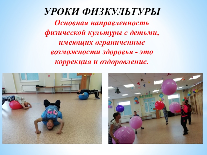 Слайд 6УРОКИ ФИЗКУЛЬТУРЫ Основная направленность физической культуры с детьми, имеющих ограниченные возможности здоровья