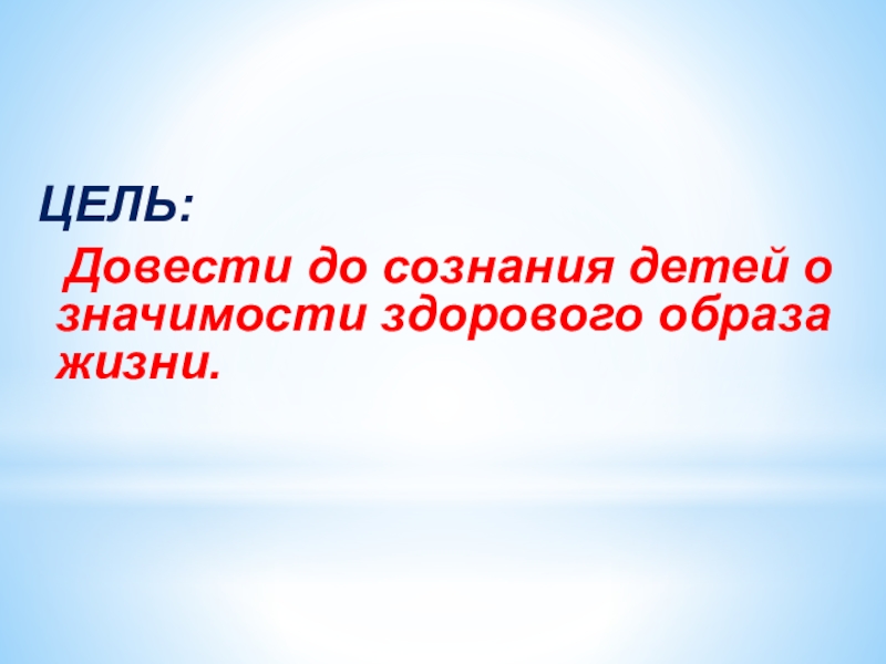ЦЕЛЬ:  Довести до сознания детей о значимости здорового образа жизни.