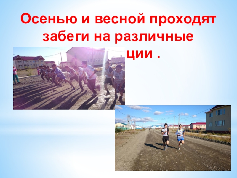 Слайд 9Осенью и весной проходят забеги на различные дистанции .