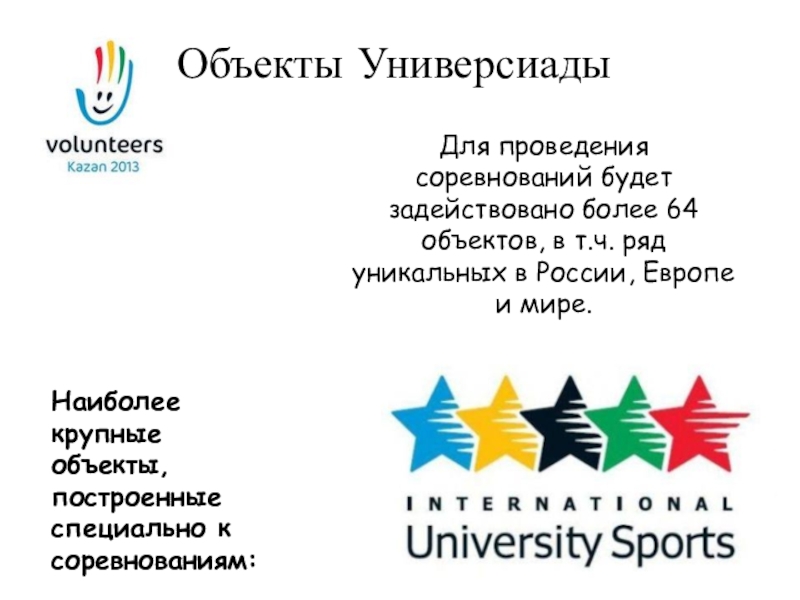 Наиболее крупные объекты, построенные специально к соревнованиям: