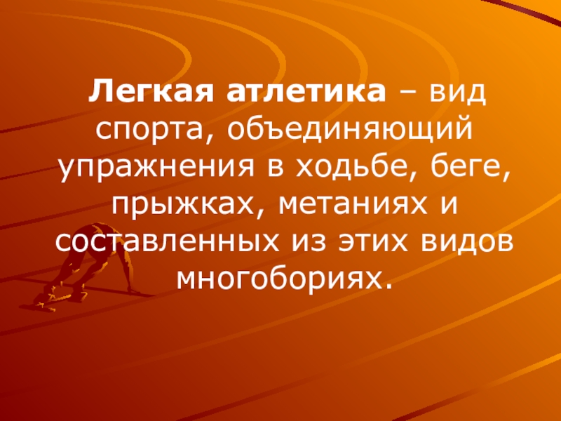 Легкая атлетика – вид спорта, объединяющий упражнения в ходьбе, беге,