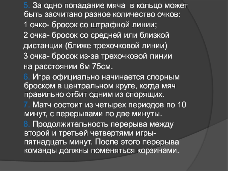 Слайд 4 5. За одно попадание мяча в кольцо может быть