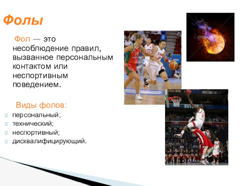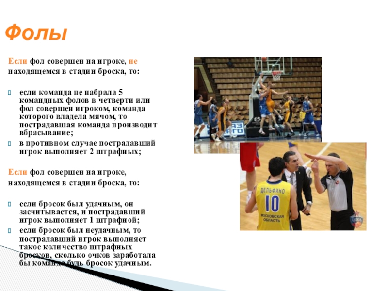 не набрала 5 командных фолов в четверти или фол совершен игроком, команда которого владела мячом, то пострадавшая команда производит вбрасывание;