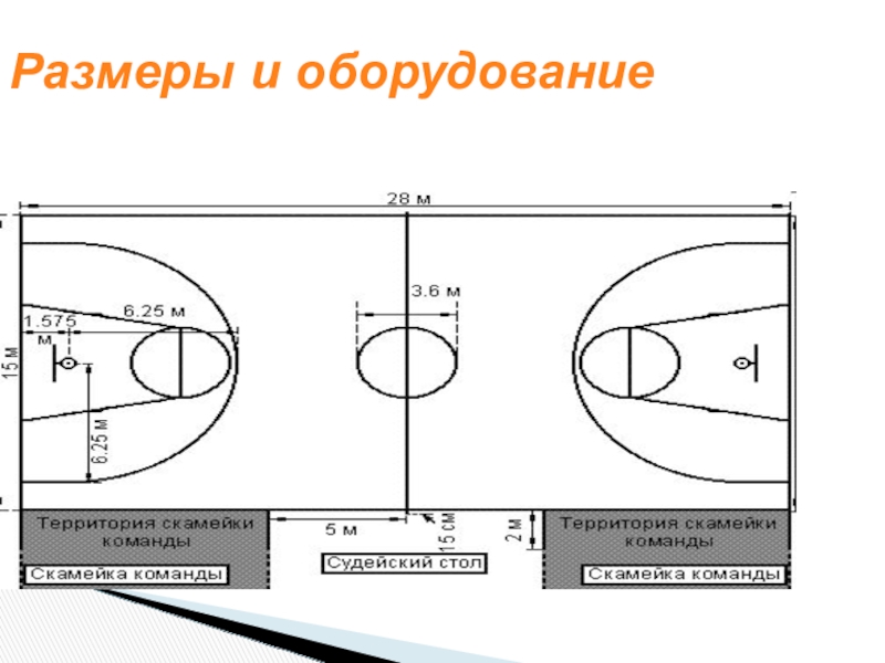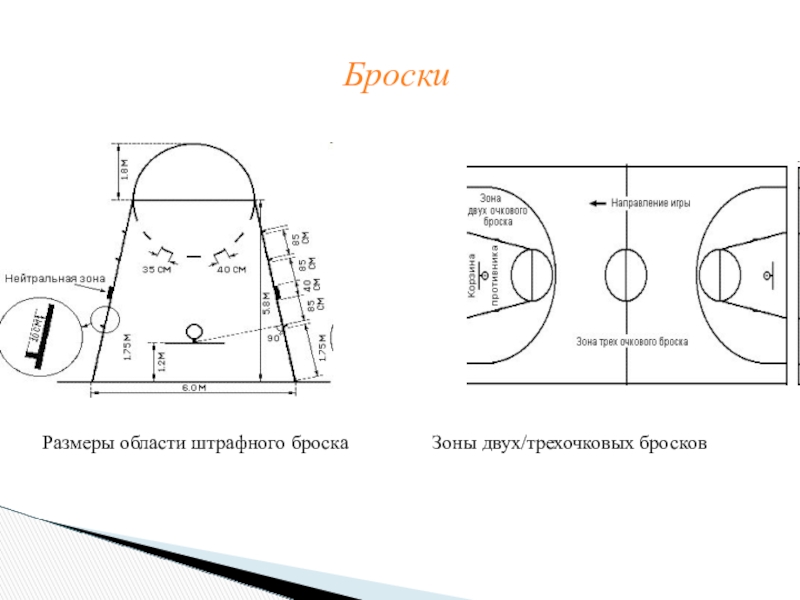 Слайд 8Размеры области штрафного броска