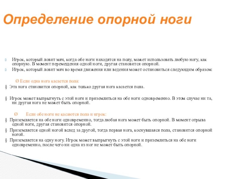 § Игрок может выпрыгнуть с этой ноги и приземлиться на обе ноги одновременно. В этом случае ни та, ни другая нога не может быть опорной.
