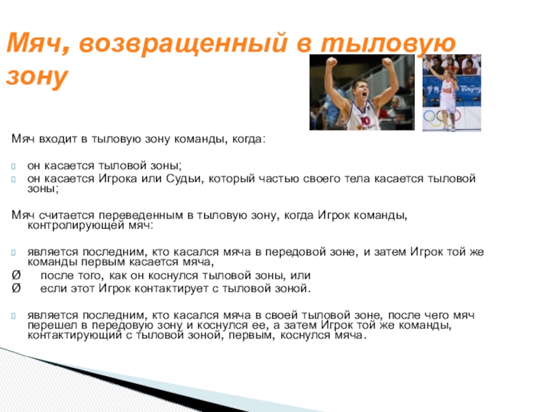 Мяч считается переведенным в тыловую зону, когда Игрок команды, контролирующей мяч: