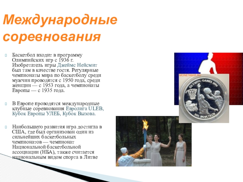 Баскетбол входит в программу Олимпийских игр с 1936 г. Изобретатель
