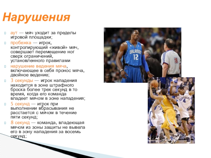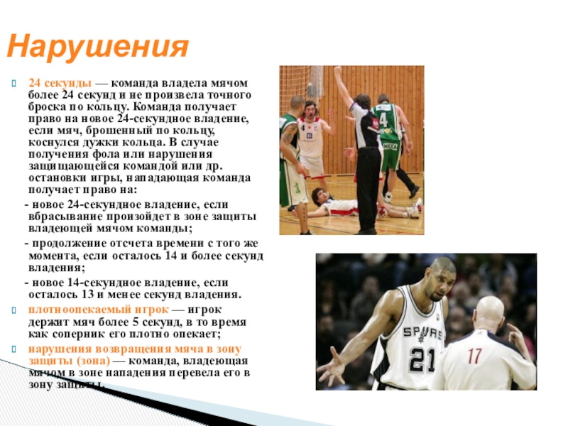 плотноопекаемый игрок — игрок держит мяч более 5 секунд, в то время как соперник его плотно опекает;