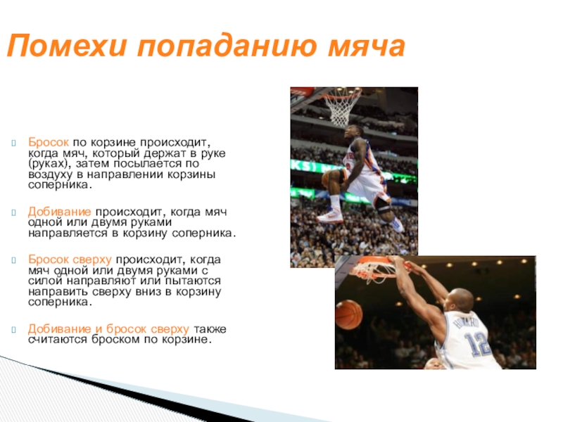 Добивание и бросок сверху также считаются броском по корзине.
