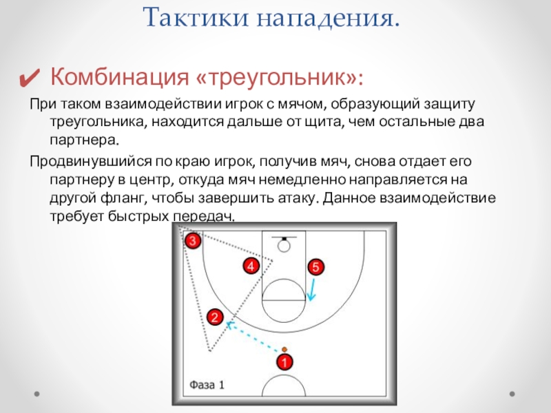 При таком взаимодействии игрок с мячом, образующий защиту треугольника,