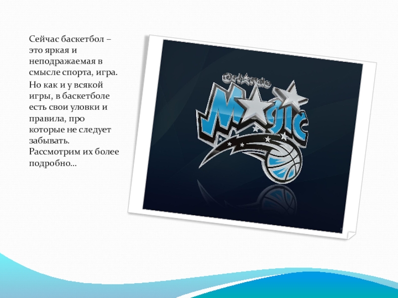 Слайд 5Сейчас баскетбол – это яркая и неподражаемая в смысле спорта, игра.