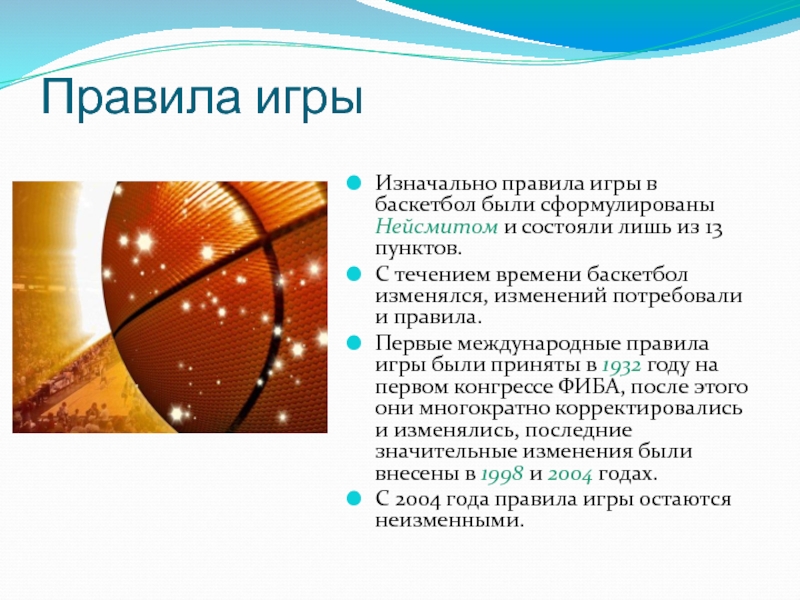 Слайд 4История баскетбола