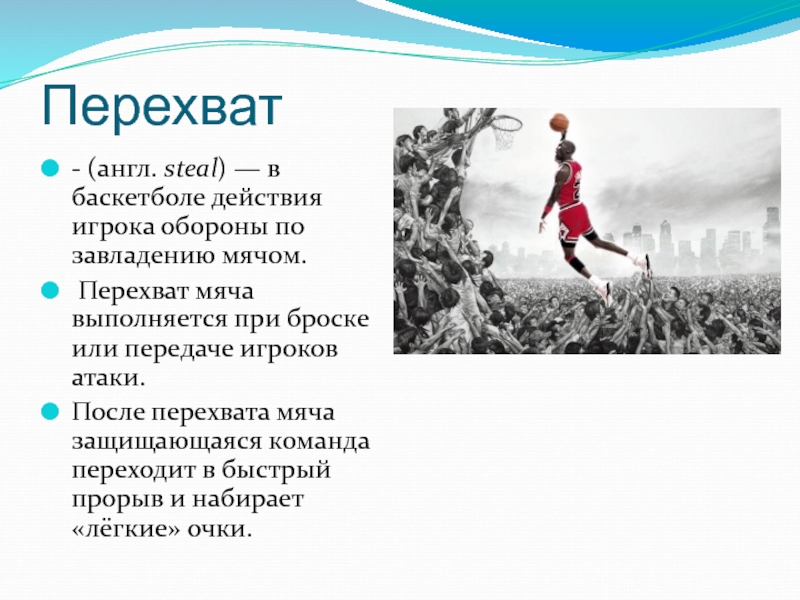 Слайд 19Перехват мяча при передаче