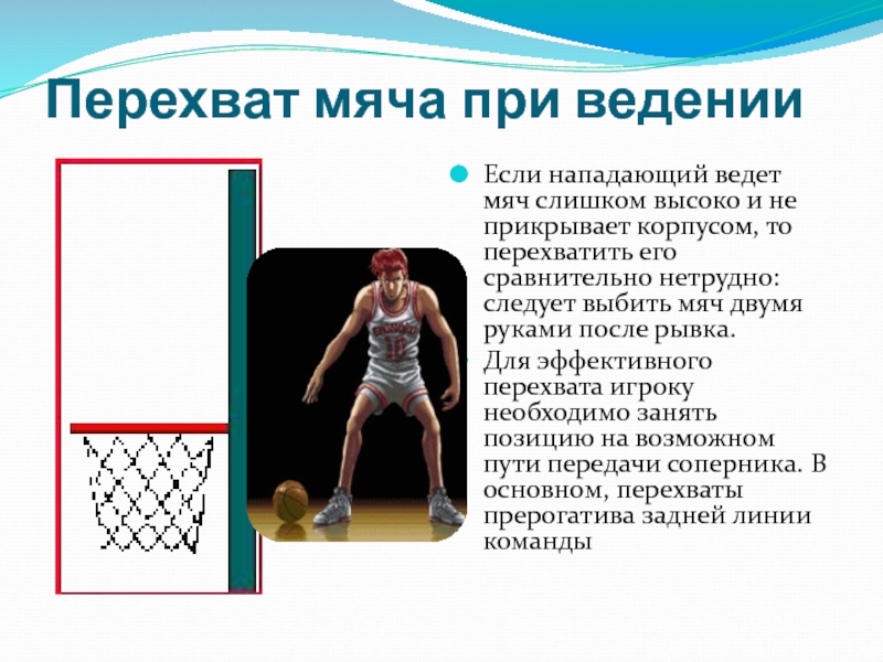 Слайд 20Перехват мяча при ведении