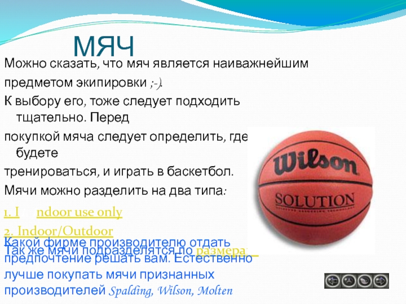 Какой фирме производителю отдать предпочтение решать вам. Естественно лучше покупать мячи признанных производителей Spalding, Wilson, Molten