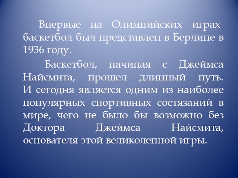 Слайд 4 Впервые на Олимпийских играх баскетбол был представлен в Берлине