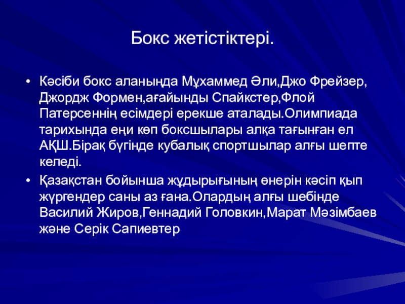 Слайд 8Бокс жетістіктері.