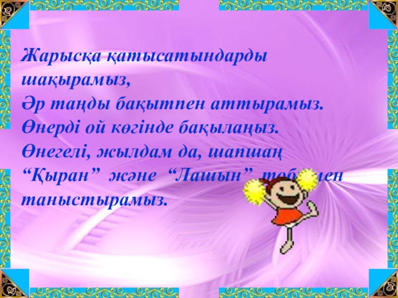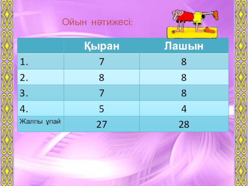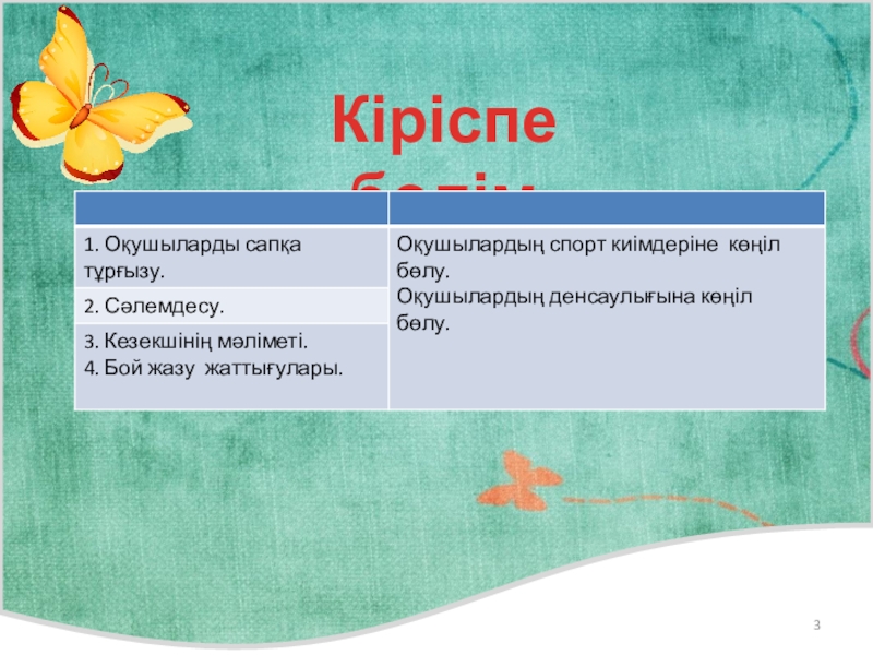 -Бастапқы қалып. Аяқ арасын ашып, қолды иыққа тірейміз.