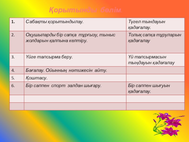 1-2 денені оңға бұрамыз, 3-4 солға бұрамыз