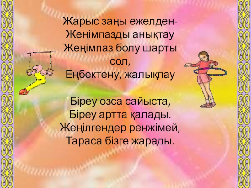 Қолды белге тіреп, аяқтың ұшымен жүру;