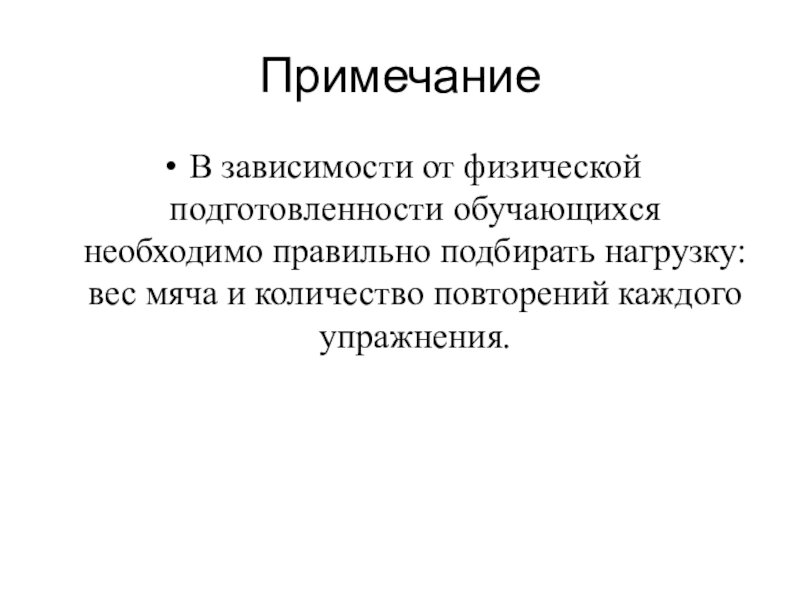 В зависимости от физической подготовленности обучающихся необходимо правильно подбирать нагрузку: вес