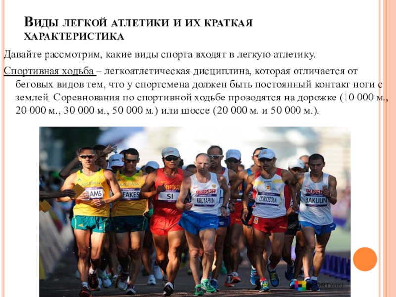 Слайд 7Виды легкой атлетики и их краткая характеристика