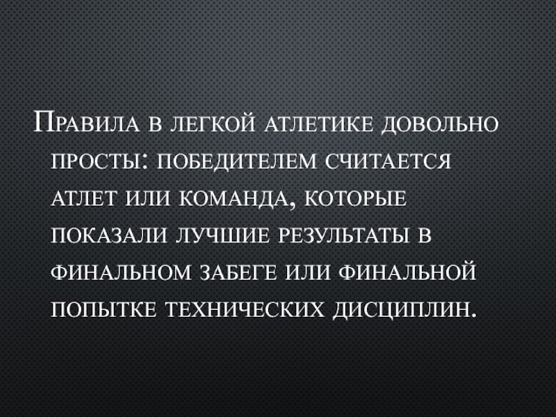 Слайд 23Правила в легкой атлетике довольно просты: победителем считается атлет или команда,