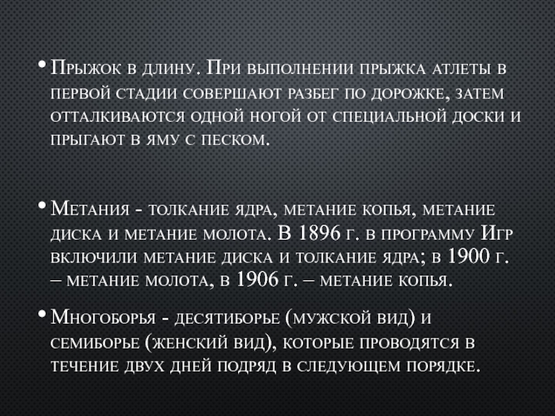 Слайд 6 Легкая атлетика как вид спорта начала складываться лишь к концу