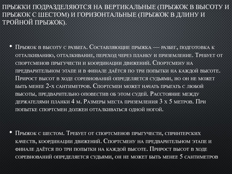 Слайд 21ПРЫЖКИ ПОДРАЗДЕЛЯЮТСЯ НА ВЕРТИКАЛЬНЫЕ (ПРЫЖОК В ВЫСОТУ И ПРЫЖОК С ШЕСТОМ)
