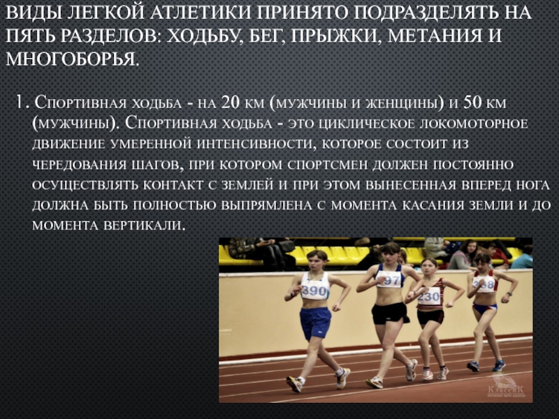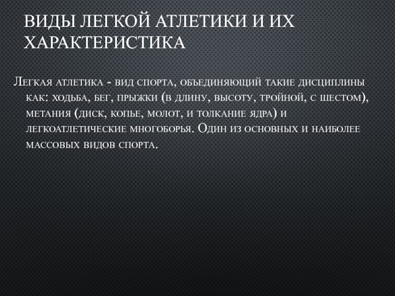 Слайд 18ВИДЫ ЛЕГКОЙ АТЛЕТИКИ И ИХ ХАРАКТЕРИСТИКА