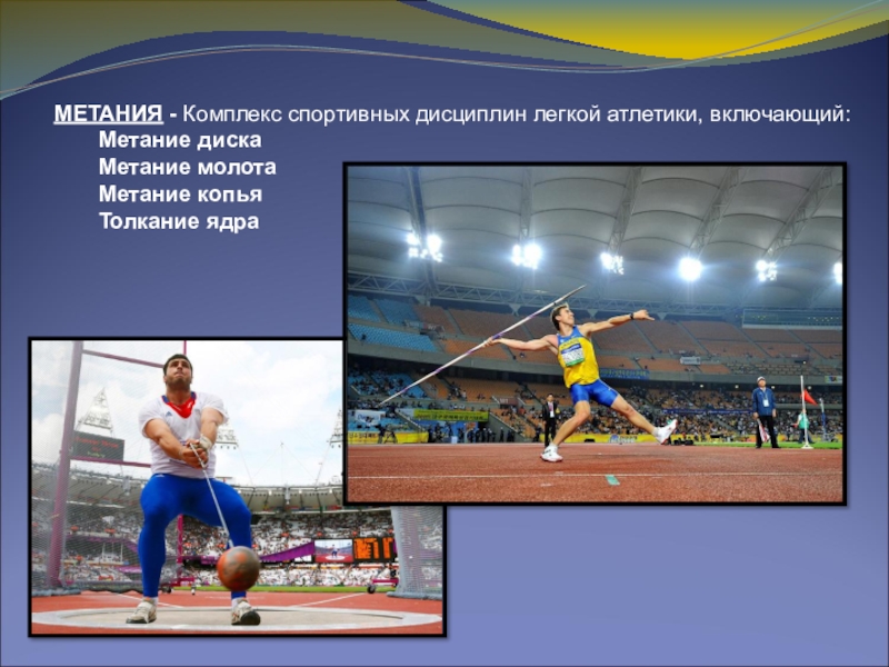 Слайд 15МЕТАНИЯ - Комплекс спортивных дисциплин легкой атлетики, включающий: