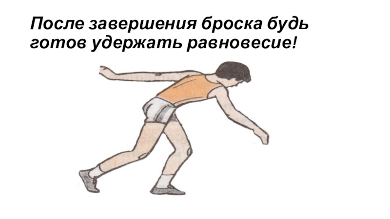 Слайд 9После завершения броска будь готов удержать равновесие!