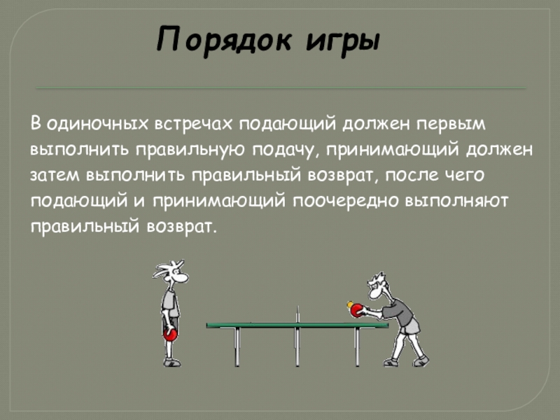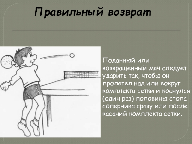 должен затем выполнить правильный возврат, после чего подающий и принимающий поочередно выполняют правильный возврат.