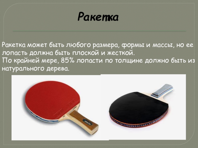 Ракетка может быть любого размера, формы и массы, но ее лопасть