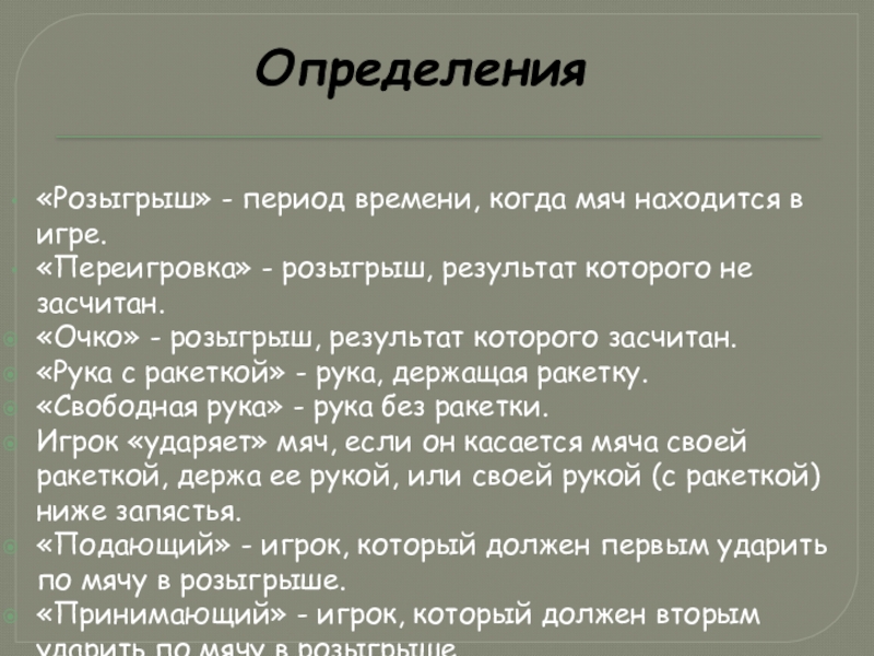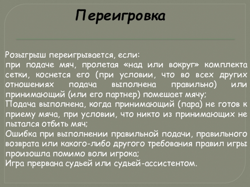 «Розыгрыш» - период времени, когда мяч находится в игре.
