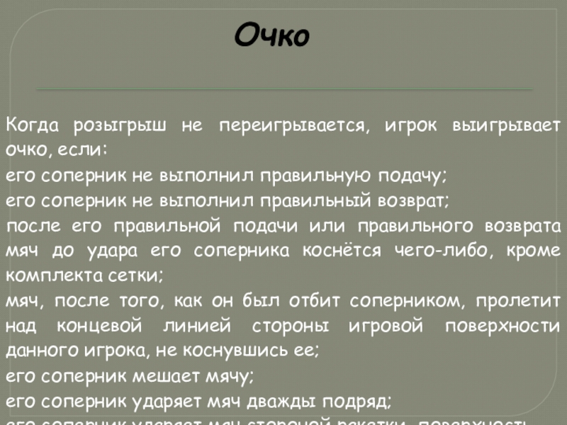 Когда розыгрыш не переигрывается, игрок выигрывает очко, если: