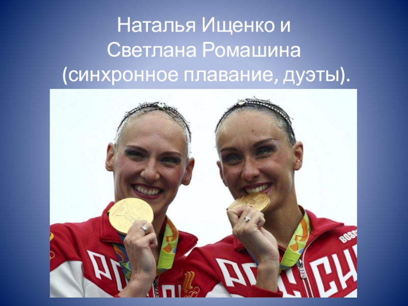 Ромашина, Алла Шишкина, Марина Шурочкина и Гелена Топилина (синхронное плавание, группы).