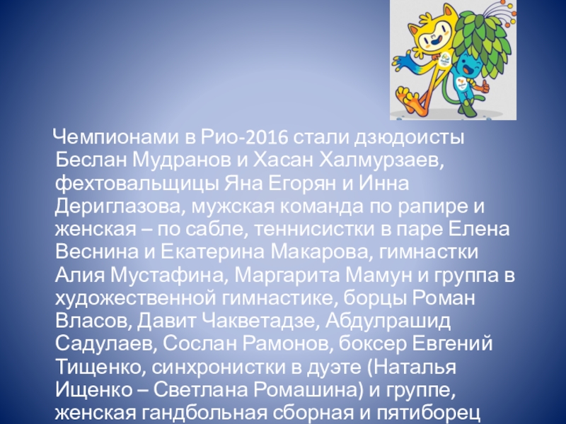Слайд 29 Чемпионами в Рио-2016 стали дзюдоисты Беслан Мудранов и Хасан