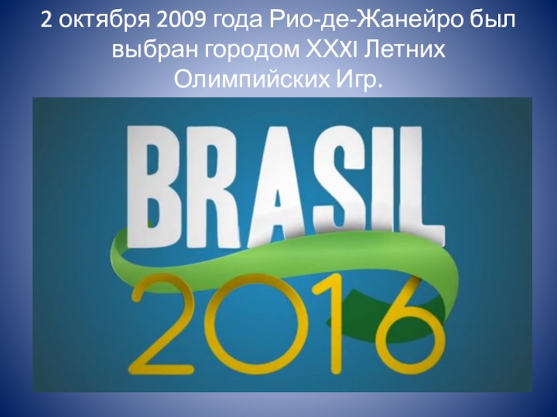 Слайд 12 октября 2009 года Рио-де-Жанейро был выбран городом ХХXI Летних Олимпийских