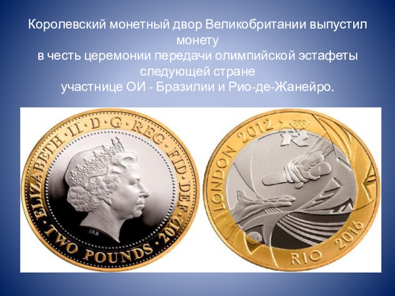 Слайд 6Королевский монетный двор Великобритании выпустил монету