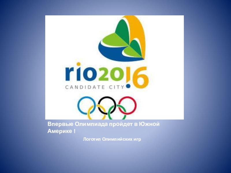 Слайд 2Впервые Олимпиада пройдет в Южной Америке !