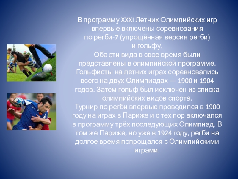 Слайд 5В программу XXXI Летних Олимпийских игр